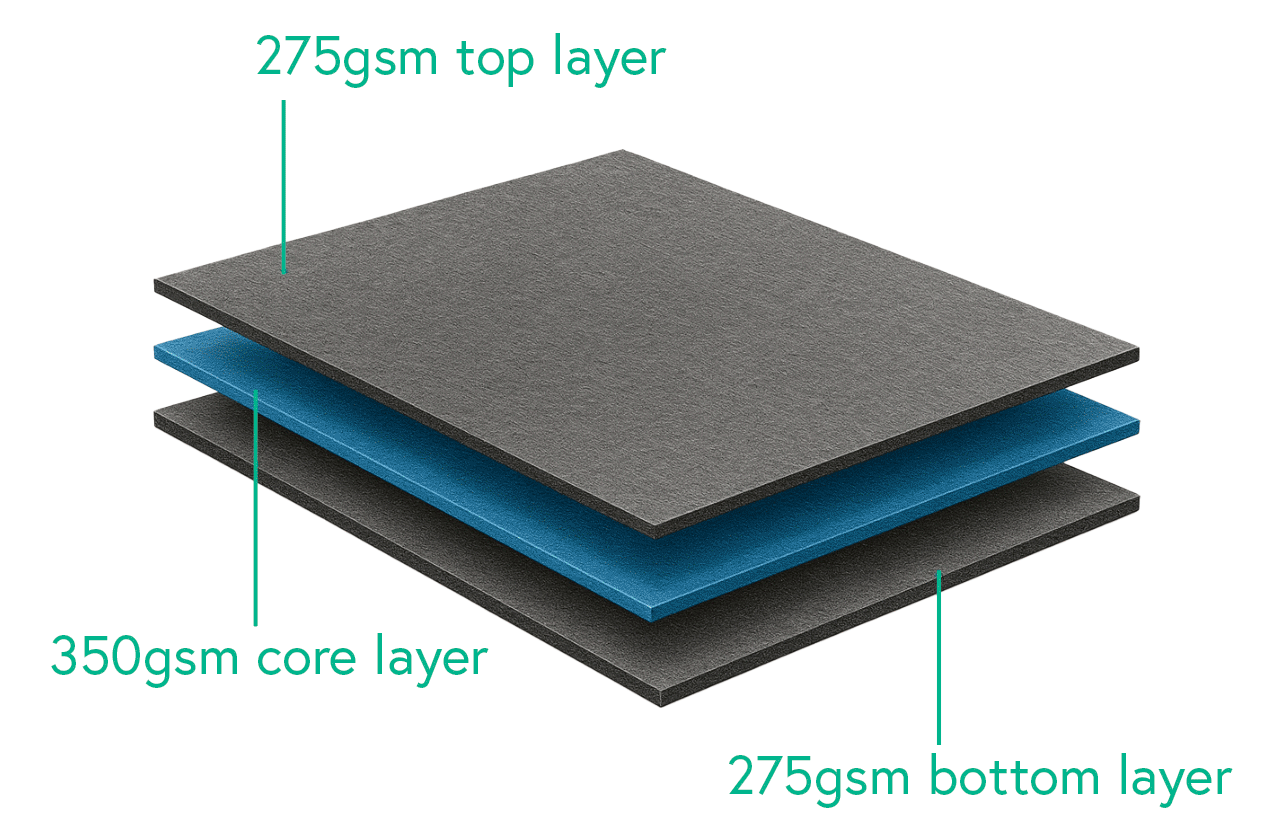It's also possible to customise the colour of both outer layers and the core itself. These can be the same colour for a monochromatic look or different hues for a more dynamic, layered or sandwich effect. The colours available are shown below.