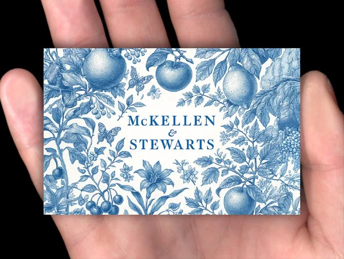 Our biodegradable translucent business cards use a polymer plastic that allows light to pass through diffusely. This unique property allows for truly unique design elements such as watermarks or dual plane printing. The cards are printed by hand using traditional artisan methods. Each ink is applied to the plastic on separate passes. This allows us to reproduce artwork with fine detail and perfect registration between colours.